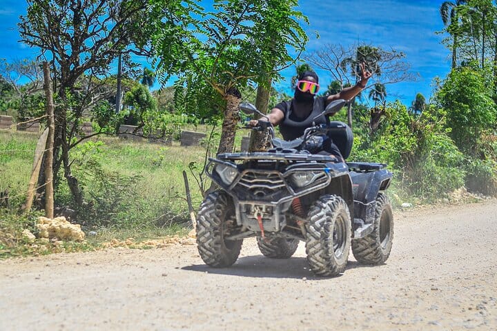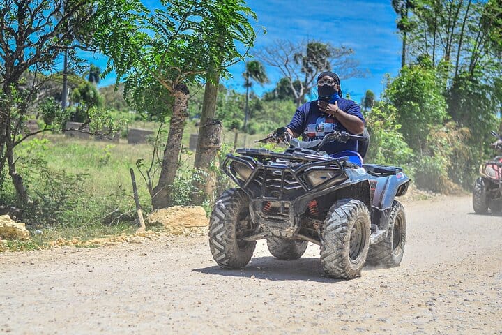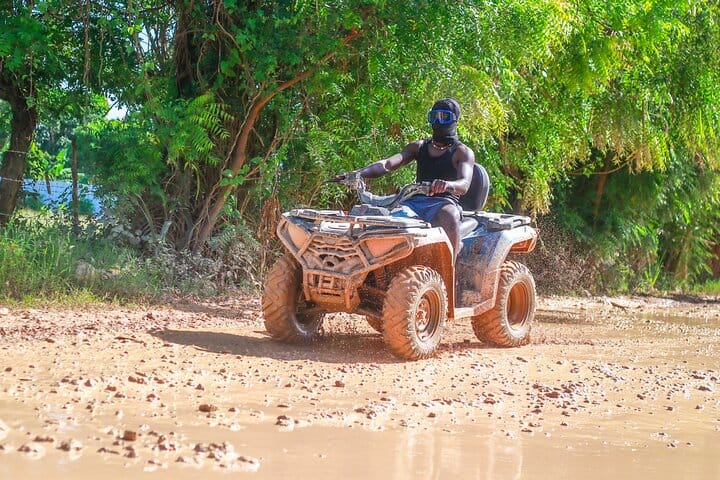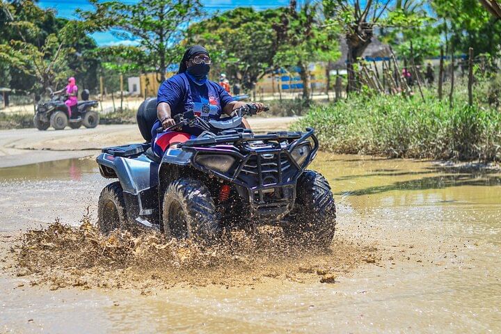 This is not a common tour, it is a true Dominican adventure! What sets us apart is the perfect combination of adrenaline and nature: you’ll drive a powerful ATV along rural roads full of tropical landscapes, mud puddles and exciting routes, followed by a horseback ride along a crystal clear river, surrounded by palms, fruit trees and the authentic rural atmosphere of Punta Cana.