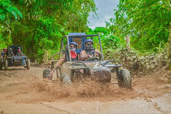Explore the beautiful landscapes of Punta Cana with a thrilling ATV and boogie ride. This guided tour takes you through rural muddy roads, where you'll visit a typical ranch for a delightful tasting of local coffee and cacao. Enjoy a refreshing swim at a natural cave and relax at the stunning Playa Macao. Perfect for solo adventurers, each buggy accommodates one driver, allowing for an exhilarating driving experience. This 3-hour adventure is led by bilingual guides who ensure you get the most out of your journey.